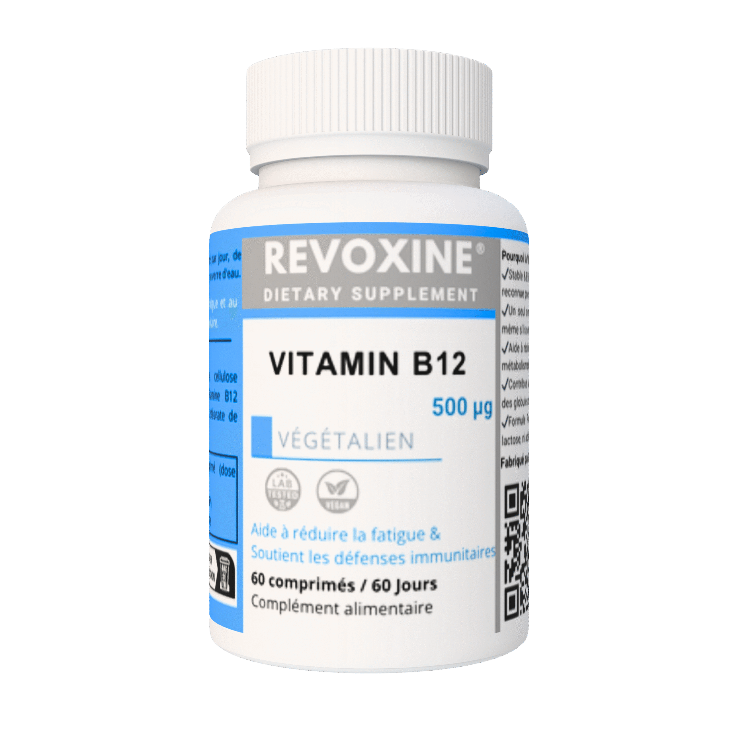 La Vitamine B12 de REVOXINE est formulée à partir de cyanocobalamine hautement biodisponible pour garantir une assimilation optimale.